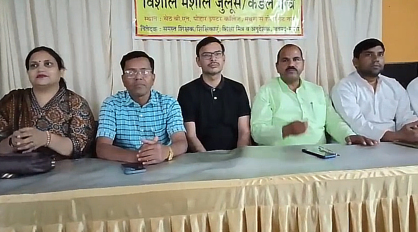 अनिवार्यता के विरोध में हाथों में किताब और कलम थामने वाली शिक्षिकाएं और शिक्षको का सैलाव जलती हुई मशालो को थामकर सड़कों पर
